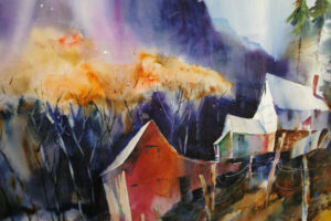 The pandemic may bring many negative thoughts to mind, but for some, it has been a boon. Such is the case for the Gilpin County Arts Association and their enchanting exhibit space in historic Washington Hall of Central City. Numerous art exhibitions and shows have been cancelled in the last year due to lack of socially safe space to exhibit. Washington Hall is uniquely structured to allow almost fifty people to comfortably mingle, so when the Colorado Watercolor Society was looking for a new place to house their annual juried exhibition, Gilpin Arts took up the call; and now, the exhibit hall is filled with amazing watercolor paintings. The 30th Annual Colorado Watercolor Society State Watercolor Exhibition in 2021 features renowned artist Stephen Quiller as juror. Quiller works primarily in water media using watercolor, gouache, acrylic, and casein in his work and has galleries in Taos, New Mexico and Creede, Colorado; however, he may be better known in the art world for inventing the Quiller Wheel – a color wheel for painters. The Quiller Wheel utilizes only colors rated as lightfast by the American Standard Trade Materials Association which have a high permanency rating ensuring the colors painters use will last.