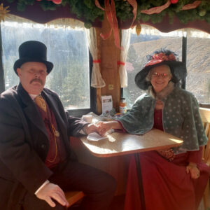 Whistle signals, a chugging historic narrow gauge train, snow on the ground between the pines, aspen and sheer rock walls along Clear Creek,  authentic Victorian garbed men, women and children, chattering, laughter, refreshments, Merry Christmas caroling and even the very cheery, old Saint Nicholas himself… where are we? The Georgetown Loop Historic Mining and Railroad Park: Santa’s North Pole Adventure.