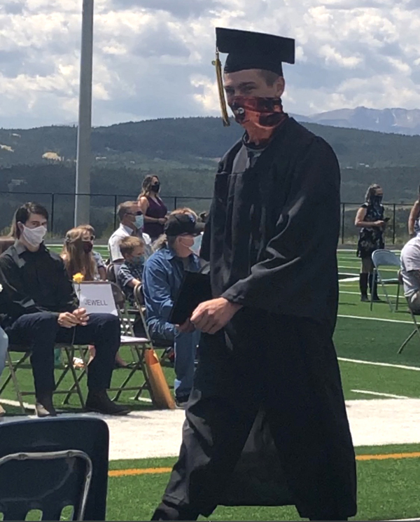 With the COVID-19 pandemic, Gilpin County High School posted graduation online. On a date not publicized and limited to school staff and graduating seniors, Gilpin held a socially responsible graduation. Held on the football field, Covid safety procedures were in place. Still, everything was very similar to Gilpin’s normal graduation.