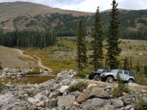 Our friends Ron and Becky drove their Jeep Wrangler down to Gilpin County from Madison, WI for another off-road adventure with us. They rented a nice little cabin on the Casey Road in Central City that they referred to as the “cliff-hanger” cabin, and we planned out our weekend trips at the Dostal Alley Friday evening.