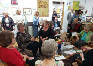 Approximately 100 people filled Washington Hall on Saturday night for the Gilpin County Arts Association’s annual fundraiser. It was a raucous, sold out event choreographed by Ron Engels on the microphone announcing the winning ticket holdersas their names were drawn. Actually every ticket holder was a winner as everyone left with apiece of art of their choice and a photo book on Central City and a small packet of notecards by Violet Aandres, a former member of GCAA who is greatly missed. It was a wonderful time seeing so many locals and non-locals eating, drinking, smiling, laughing and selecting artwork and supporting the 71 year old arts organization.