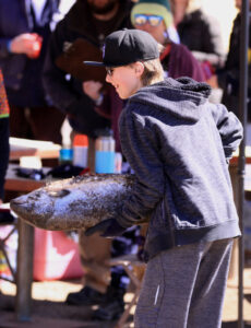 After hosting the Frozen Dead Guy Days Salmon Toss in Nederland, CO for sixteen years in a row, Hillary Stevenson needed a new venue for the event when the Sundance Café closed its doors. Turning to her friend Heather Hatwan, owner of the Stage Stop in nearby Rollinsville, Hillary found a perfect new home for the Salmon Toss, continuing the tradition.
