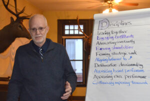 The Gilpin County Board of Education substituted a work session on board development for its regular meeting on Tuesday, March 6. The session, which was open to the public, was held at the Central City Elks Lodge. Members Craig Holmes, Brook Ramsey, Sarah Swanson, Kersten Armstrong, and Steve Boulter were present, along with Superintendent David MacKenzie and former Board member Charlotte Taylor.
