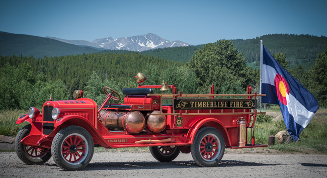 The Timberline Fire Protection District “Parade One” fire truck made its first public appearance in the Nederland 4th of July Parade. The 1924 Chevrolet Obenchain-Boyer Chemical Engine was a gift to the district to “honor the men and woman of Gilpin and Boulder Counties and their supporting families who serve the community as volunteer fire fighters past, present, and future.”